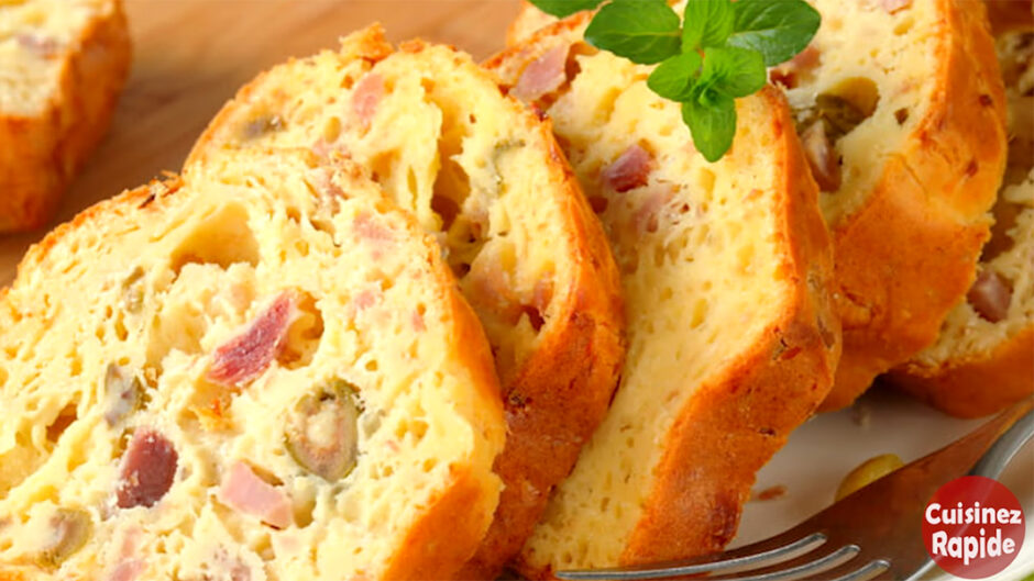 Je vous propose la recette qui accompagnera vos apéritifs, entrées ou pique-niques : un cake au jambon , fromage râpé et olives vertes.